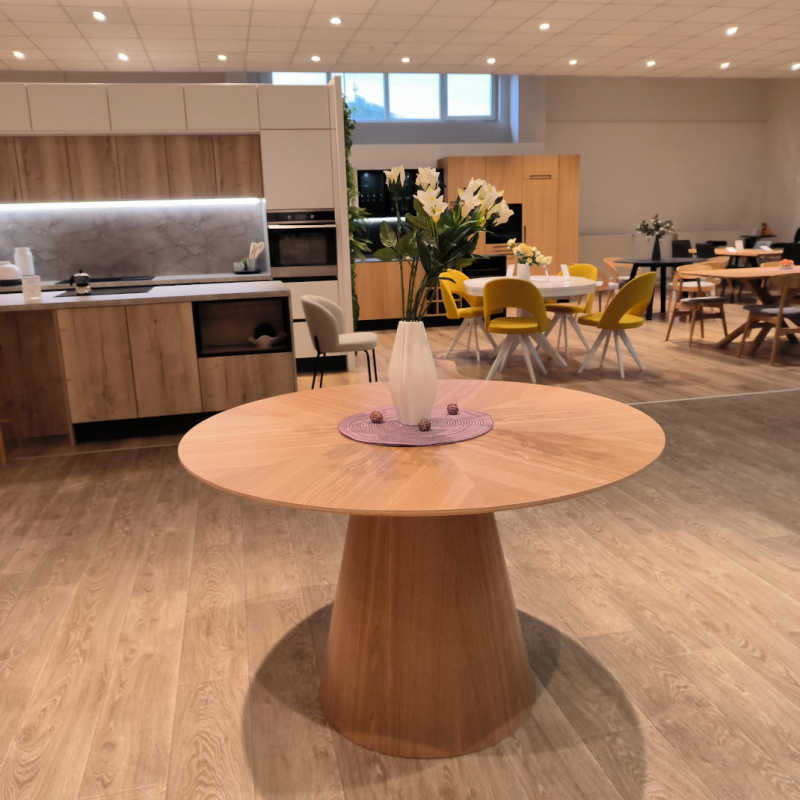 V odprodaji imamo jedilno mizo ANGEL, premera 120cm. Višina mize je 75cm